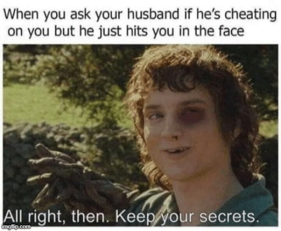 All Right Then, Keep Your Secrets - Frodo Baggins, Alright then, keep your secrets. …. If you discover this site serviceableness, please support us by sharing this posts to your preference social media accounts like Facebook, Instagram and so on or you can also Get this blog page with the title Keep.your Secrets Meme by using Ctrl + D for gadgets a laptop with a Windows operating system or Command + D for laptops with an Apple operating system. If you use a smartphone, you can also use the drawer menu of the browser you are using. Whether it's a Windows, Mac, iOS or Android operating system, you will still be able to bookmark this website.